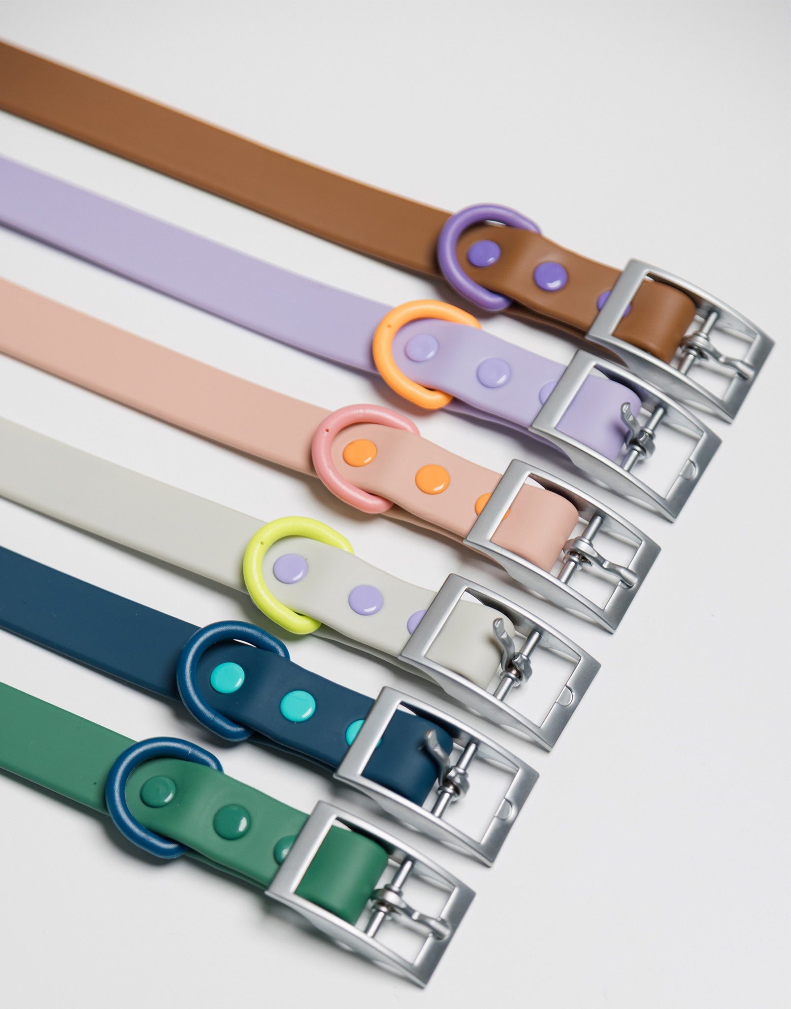 Un collar cool y colorido. Gracias a su material PVC es facilísimo de limpiar y no adquiere malos olores. Puedes combinarlo como quieras con nuestras correas. Y darle personalidad con nuestros accesorios